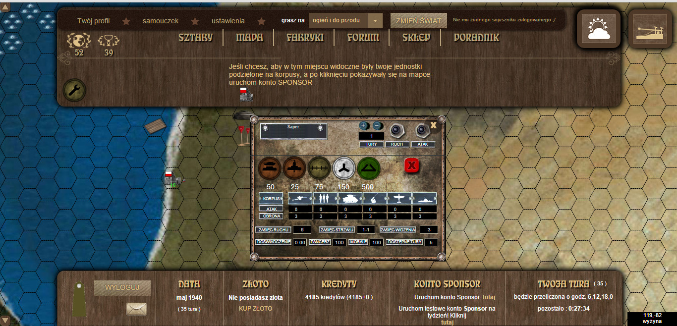 Gra Wichry Wojny wprowadzi cię w świat wojennych podbojów, wspólnych akcji dywersyjnych na tyłach wroga- to tutaj możesz zaplanować największe kampanie wojenne jakich jeszcze nie było!